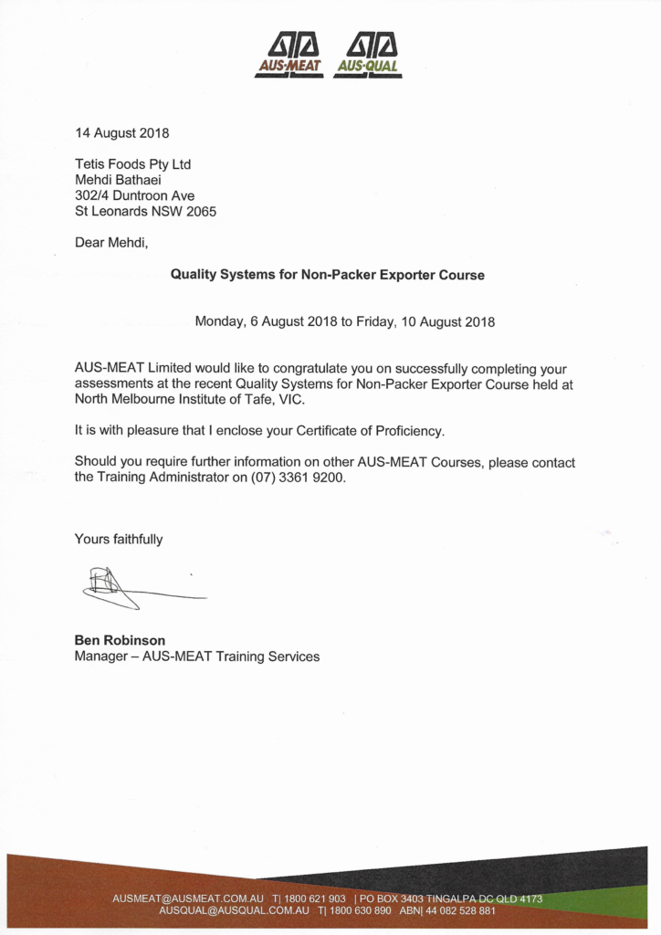 AUS-MEAT NPE-Quality Systems Accreditation Certificate